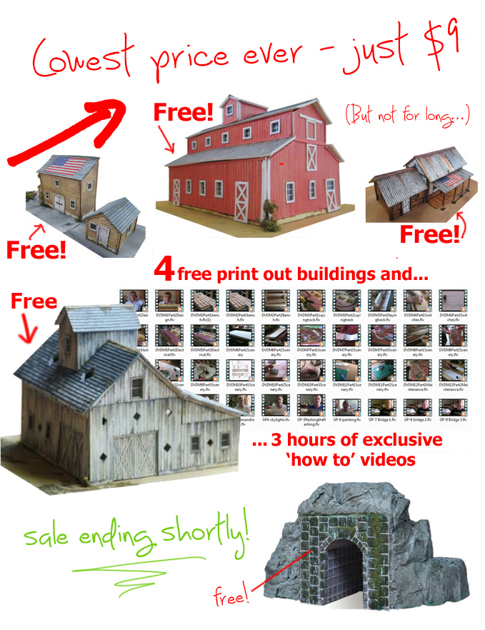 The last in most folk's wishlist for their layout is a tunnel. In this free bonus you'll see more tricks than you can shake a stick out. Like what to do when your train derails in the middle of it!