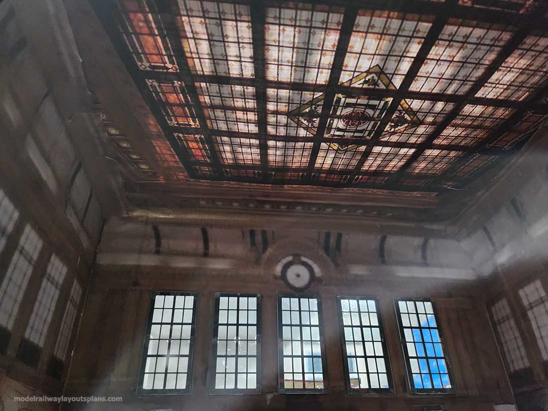 Rooftop view of Lackawanna Terminal stained glass ceiling
