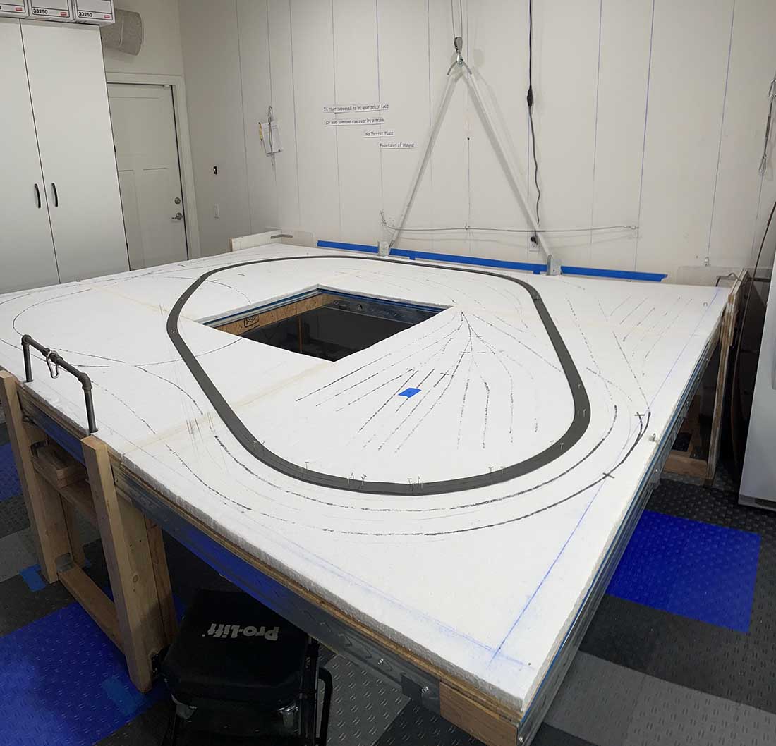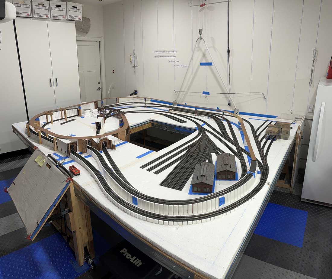 It looks like you’re using the WS Track-bed under as your roadbed: how is that working out for you? I have a bunch of it I bought for that layout but haven’t gotten around to laying any of it yet. Did you glue it down with PVA or something else? Anyway, I commend your efforts to make your layout fold up along the wall. It looks like a real engineering project to get it all working. Keep us posted as it progresses.