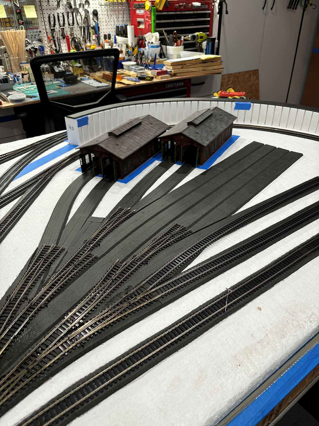 I’m using WS Foam Tack Glue for just about everything, so far. It’s worked well for the risers and track-bed. I’m happy with the WS track-bed. It’s flexible enough and I just cut it down the middle when doing the curves to make it fit.