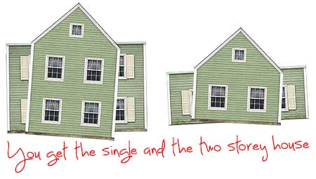 Their house, like all the houses, can be two storeys or single storey. And the roof windows? You can leave them or add as many as you want.