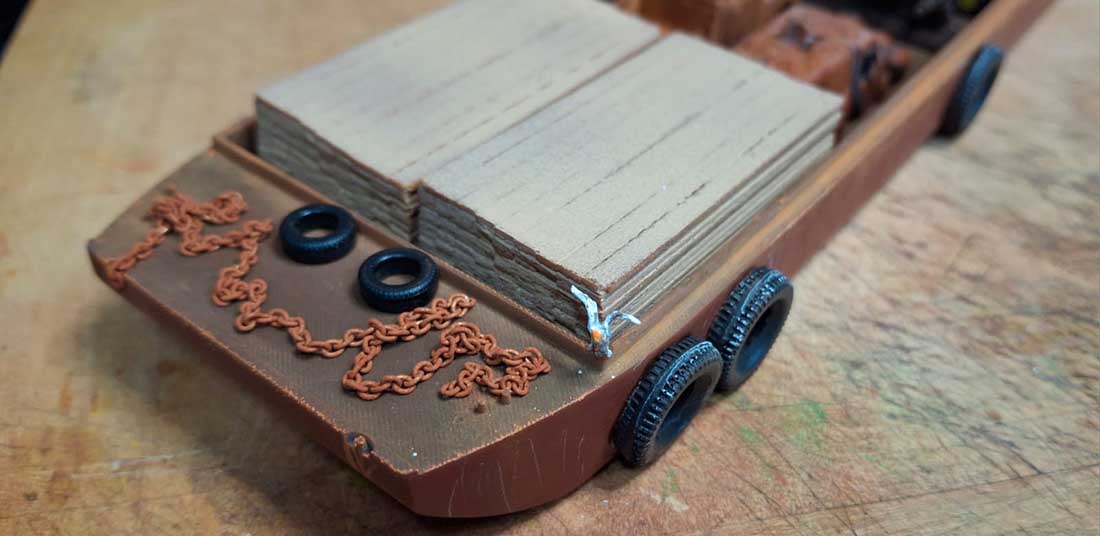 The wood loads need a bit of weathering. (Possibly a black or brown wash on them)