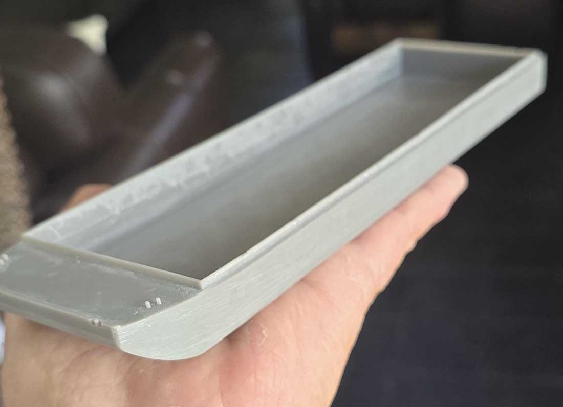 I sent the file to my friend who does the 3D printing and asked him if he could print one for me in HO scale please. A couple of days later (after 14 hours of print time) a slightly shorter barge modified to fit his build plate in his printer, I had my barge.