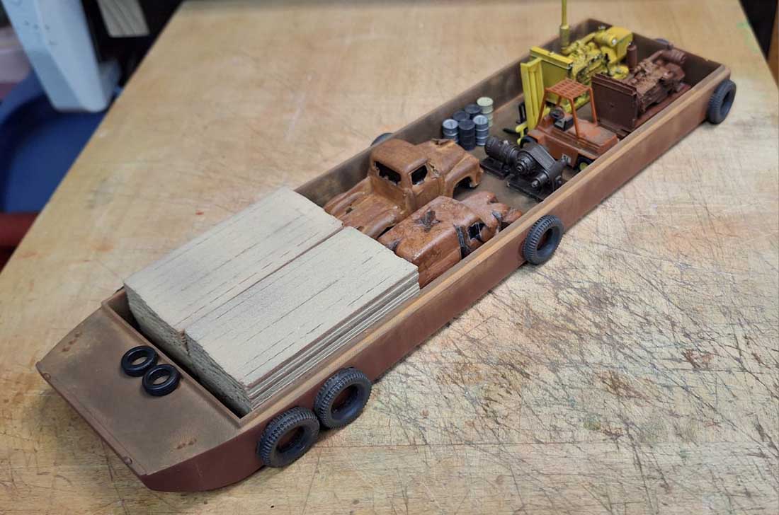I saw a photo of a model industrial barge which I liked and thought that I could use one on my waterways around the layout. I love anything boat wise.