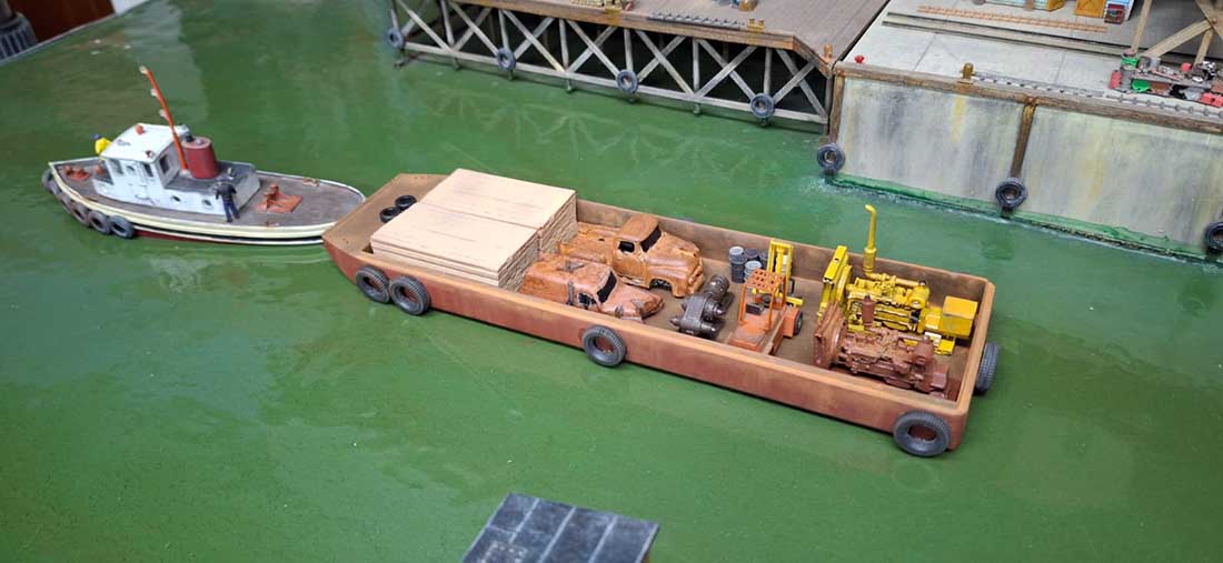 Awesome job on the barge, I also liked the tug boat and the lobster boats. Great job !!!!!