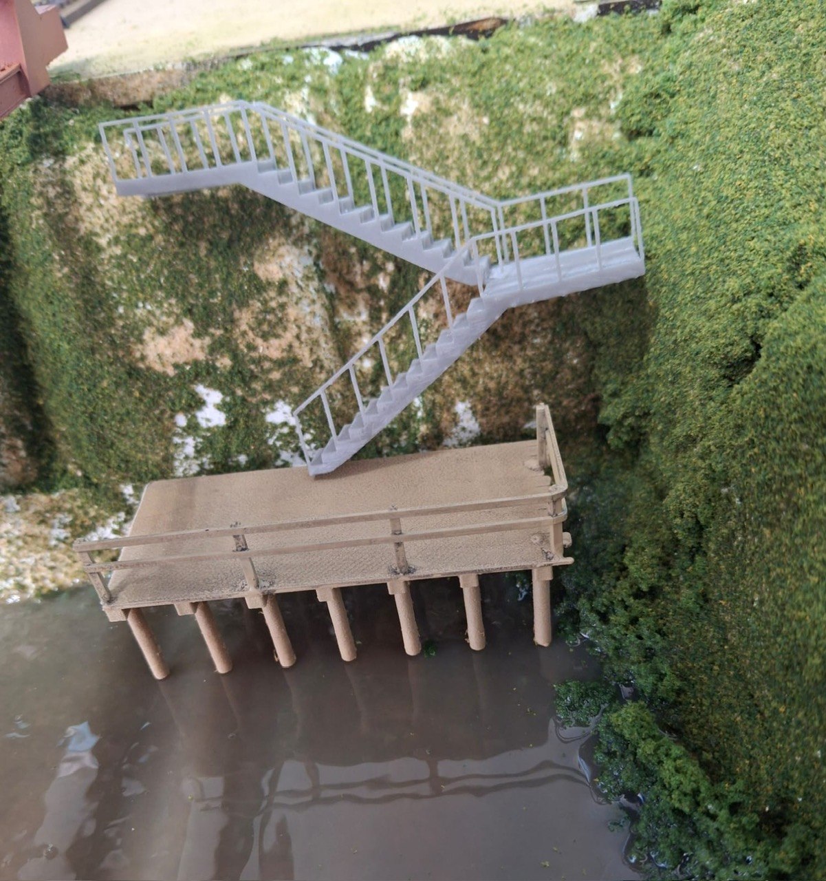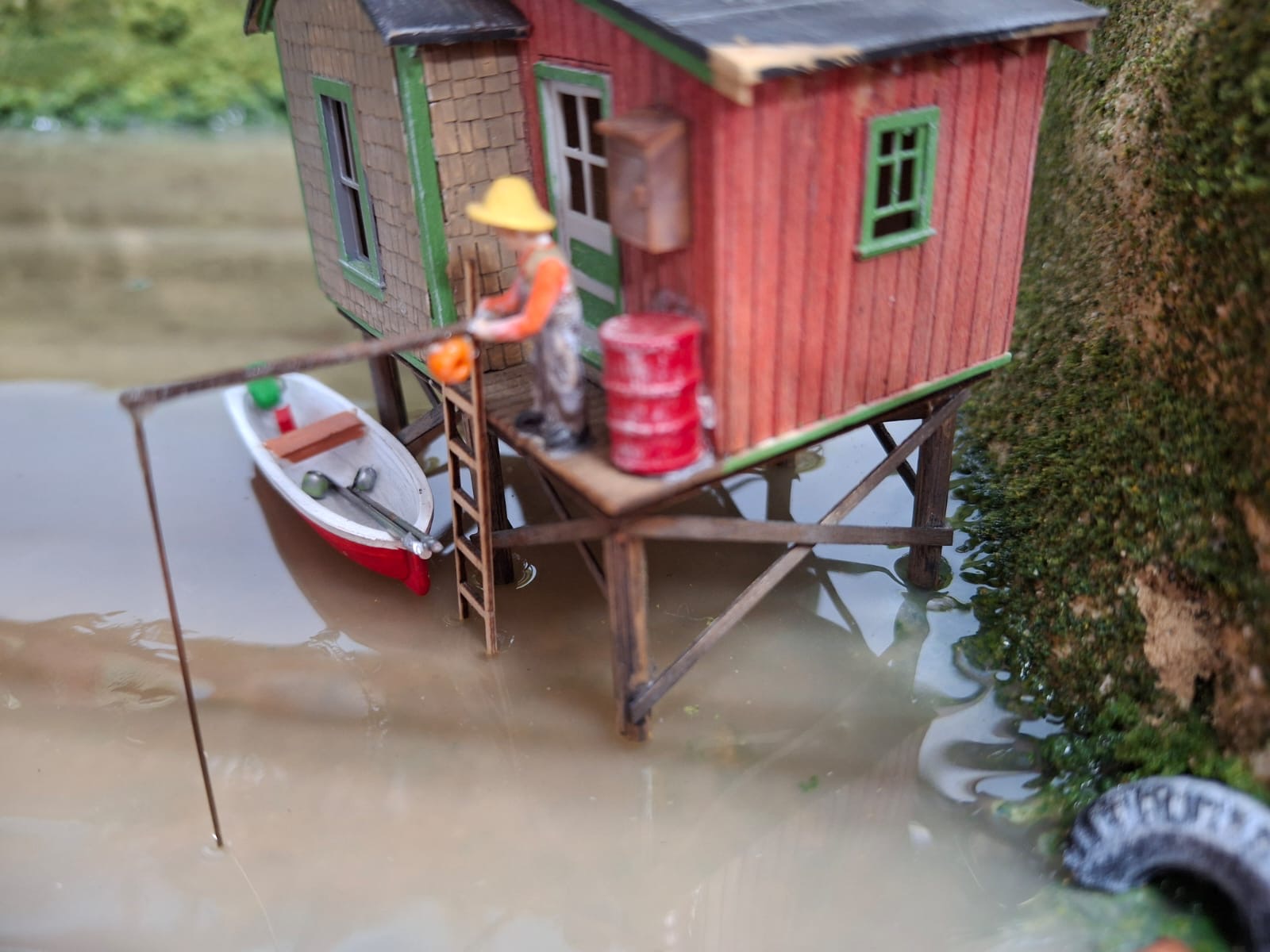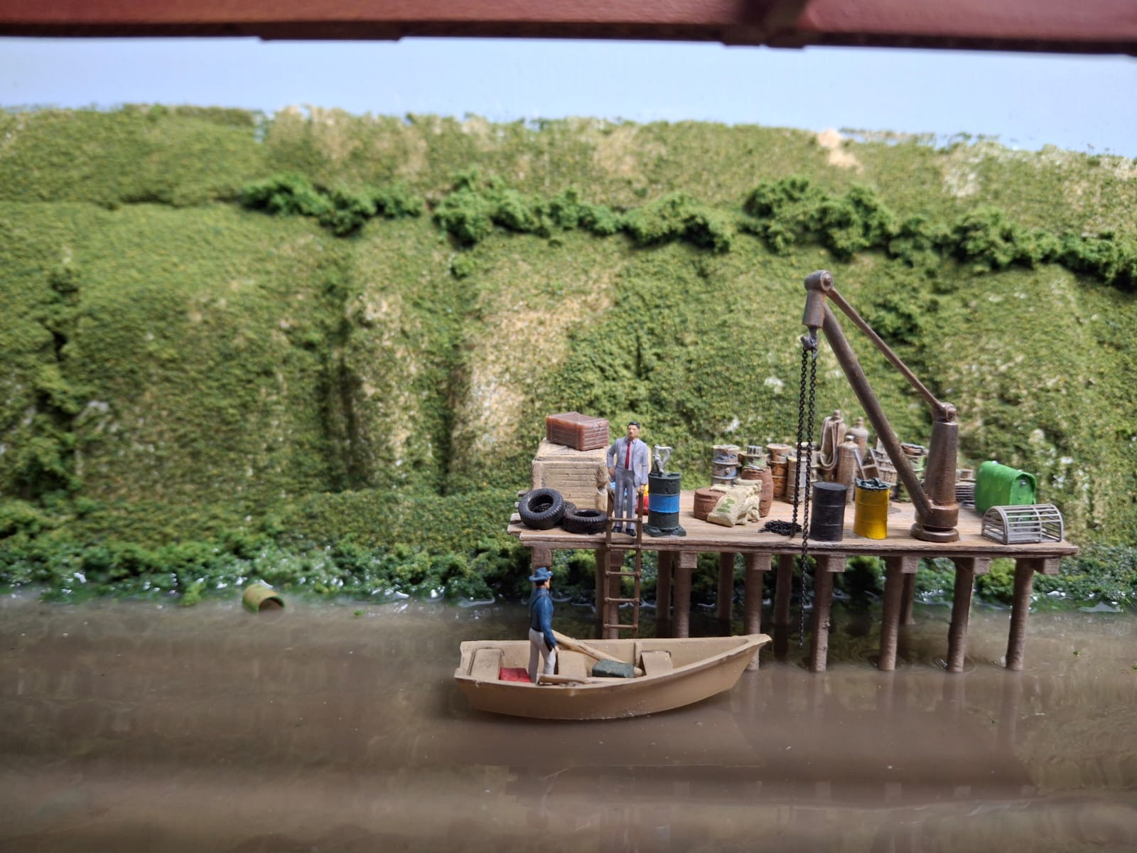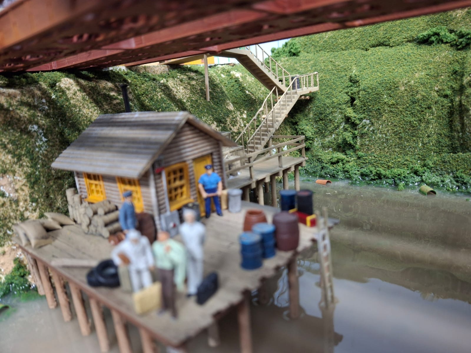 The almost complete boat house and deck. I will do a separate article on the building, painting, weathering of this 3D printed kit.
