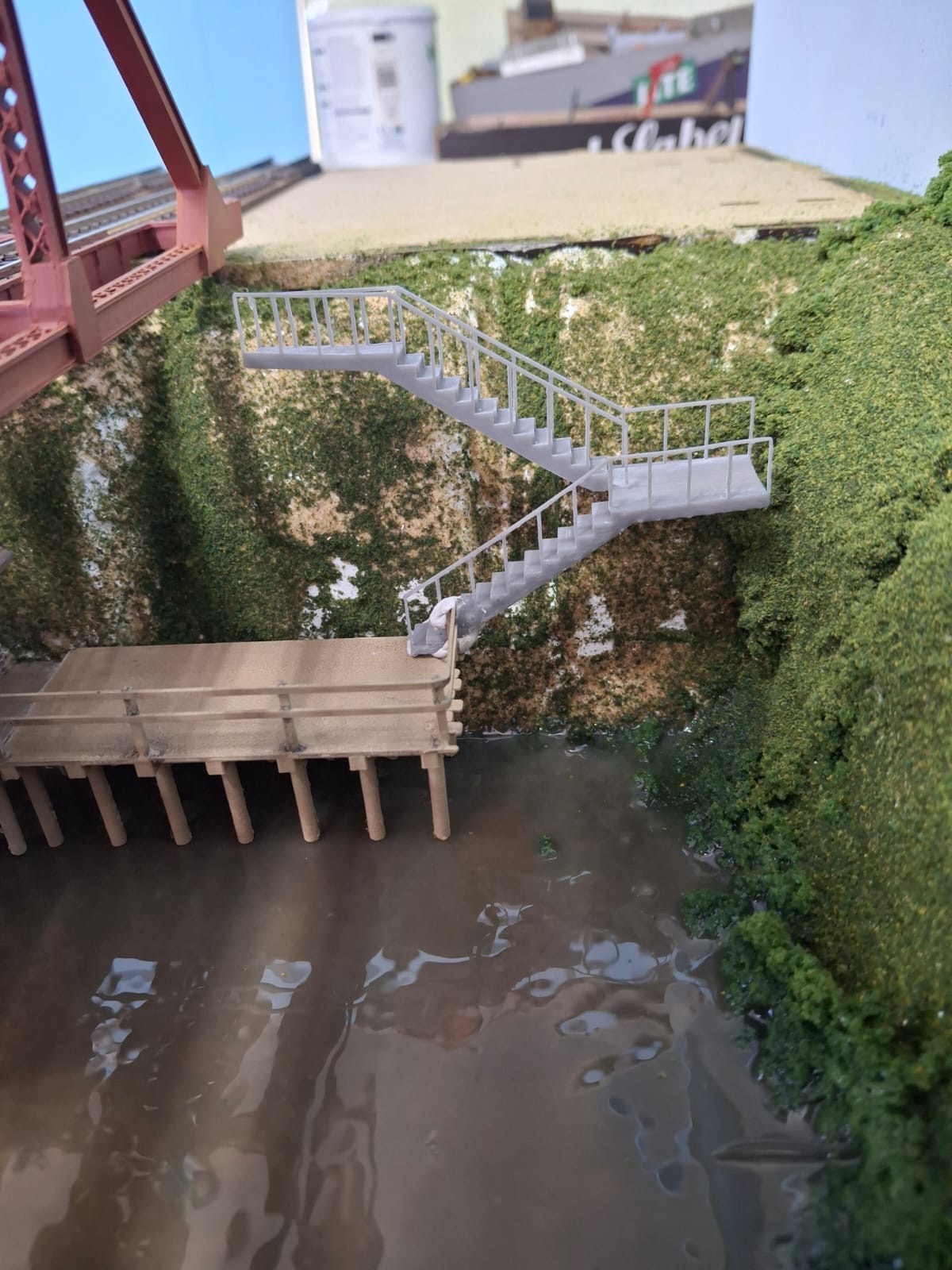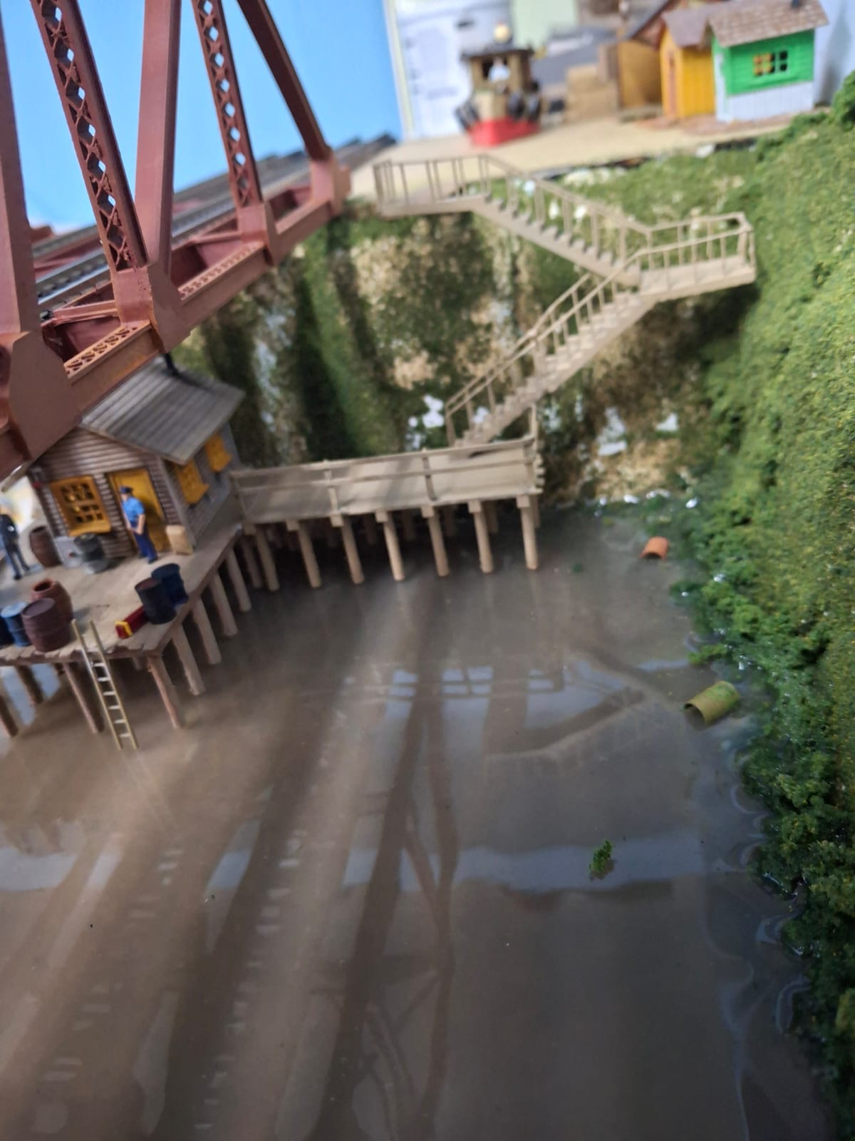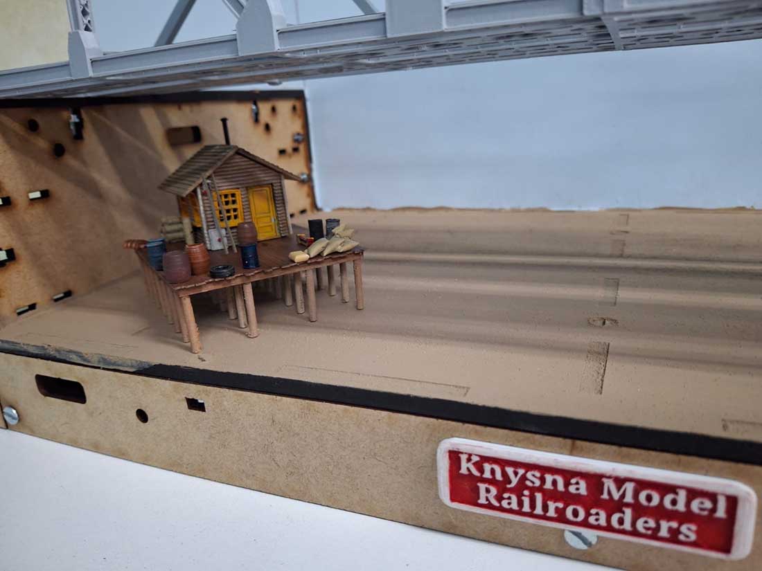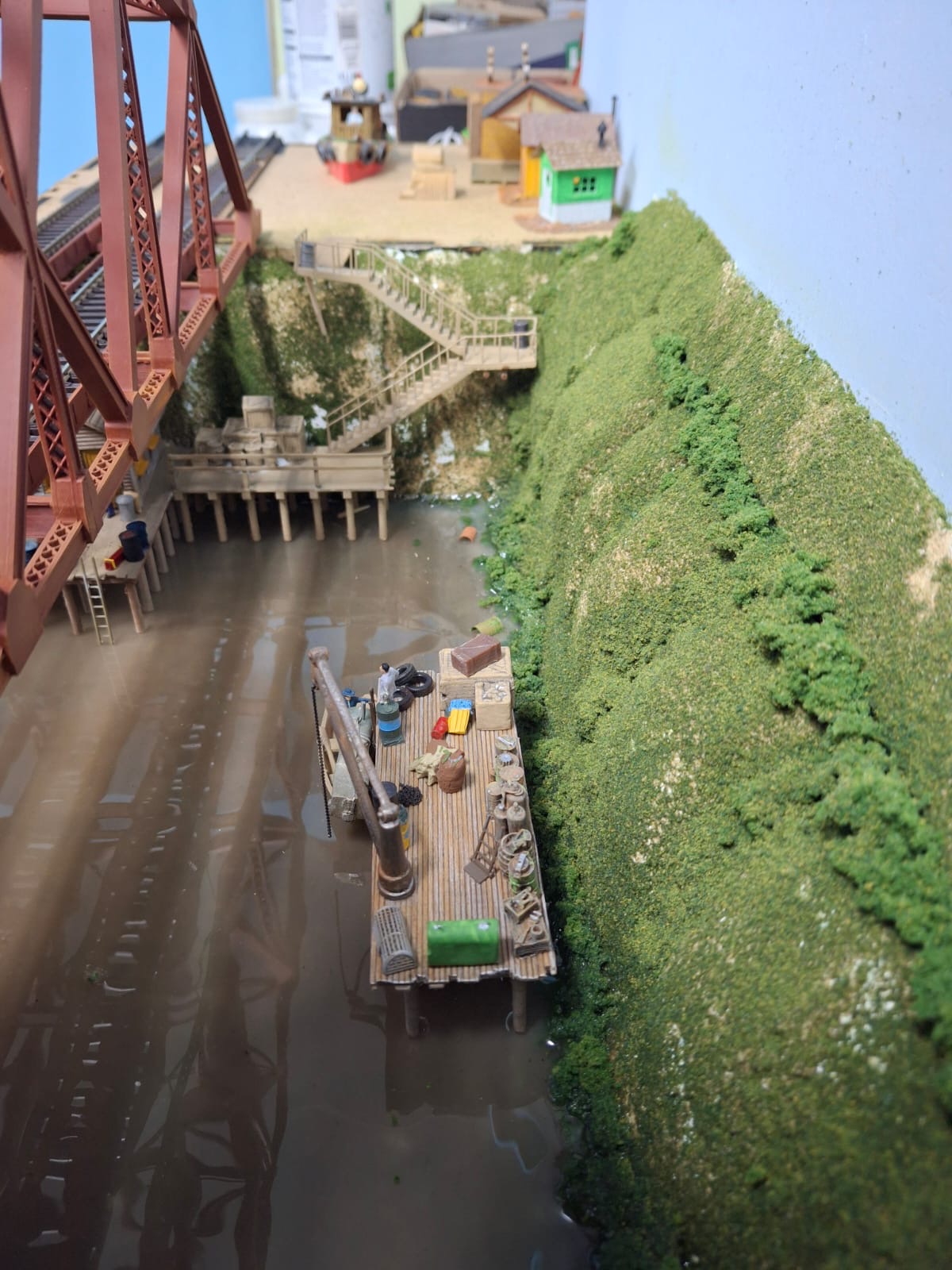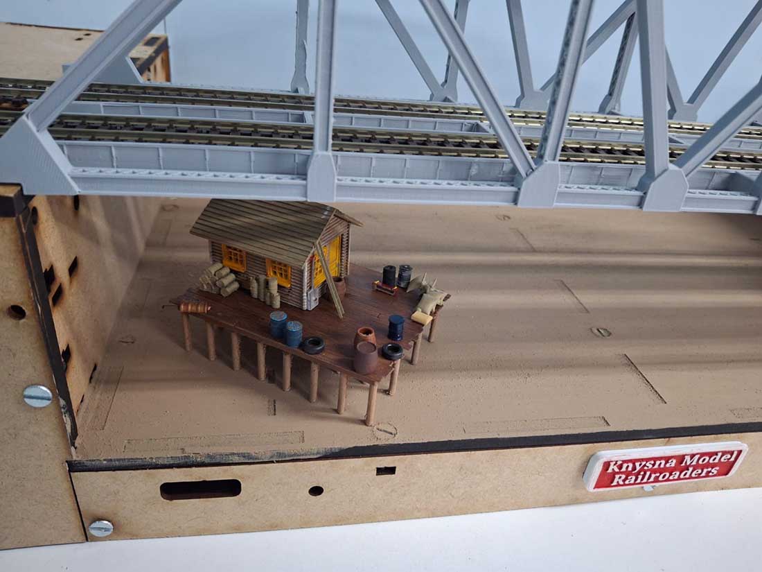 The almost complete boat house and deck. I will do a separate article on the building, painting, weathering of this 3D printed kit.