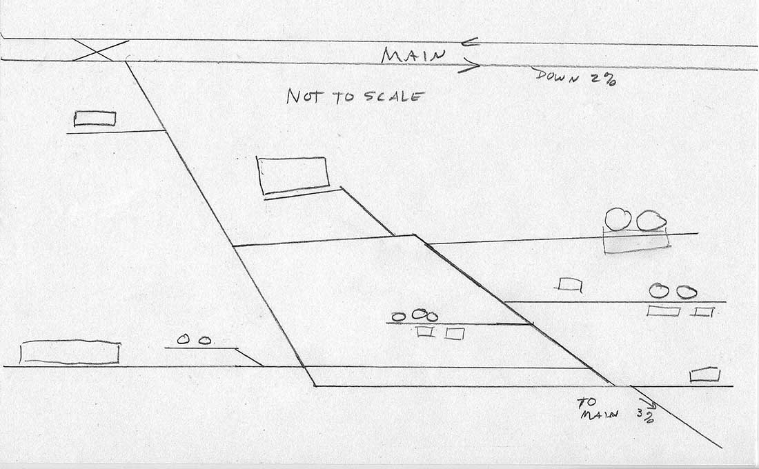 Here is the industrial area and the path of the old mainline. The schematic of the area.