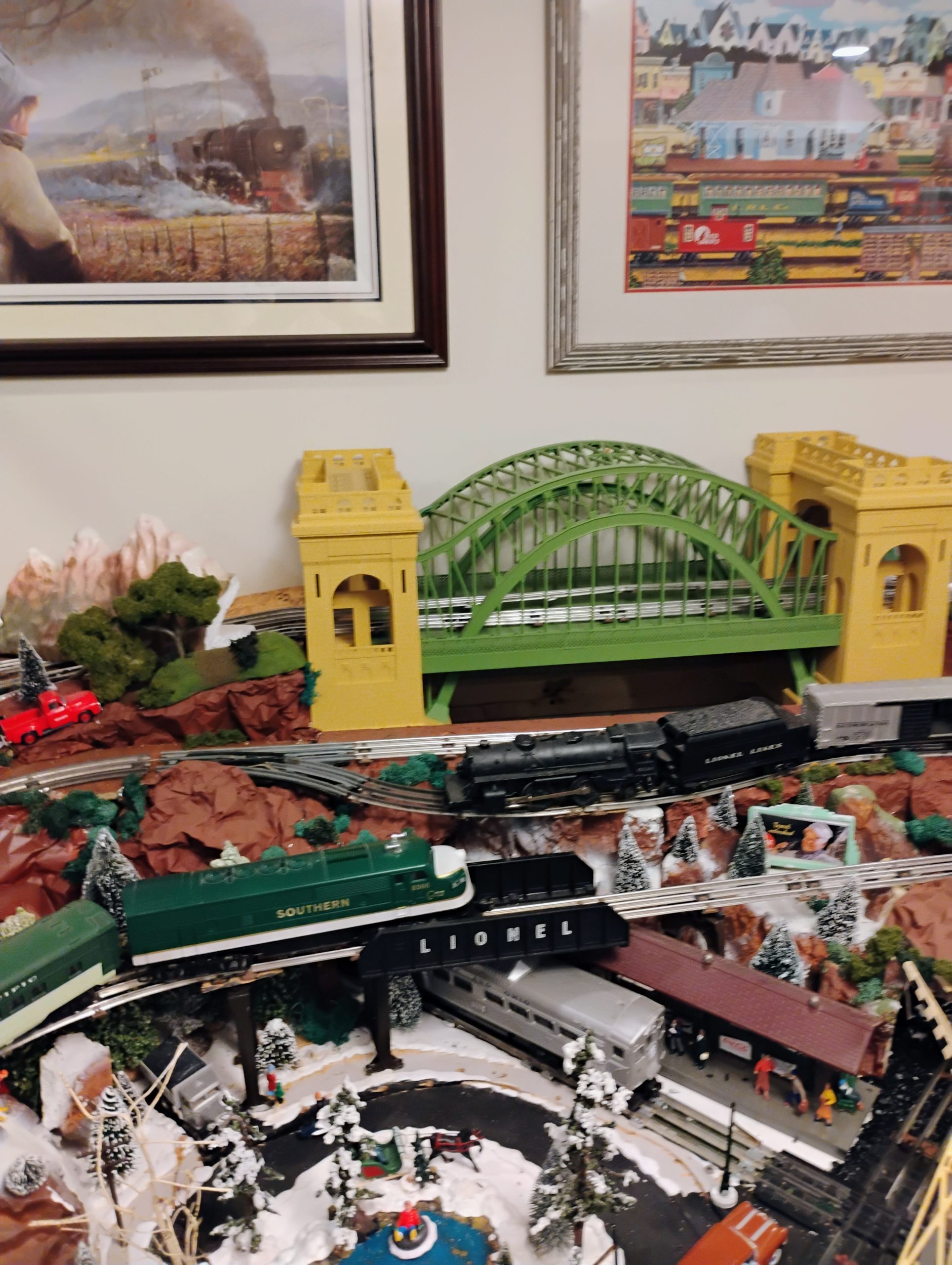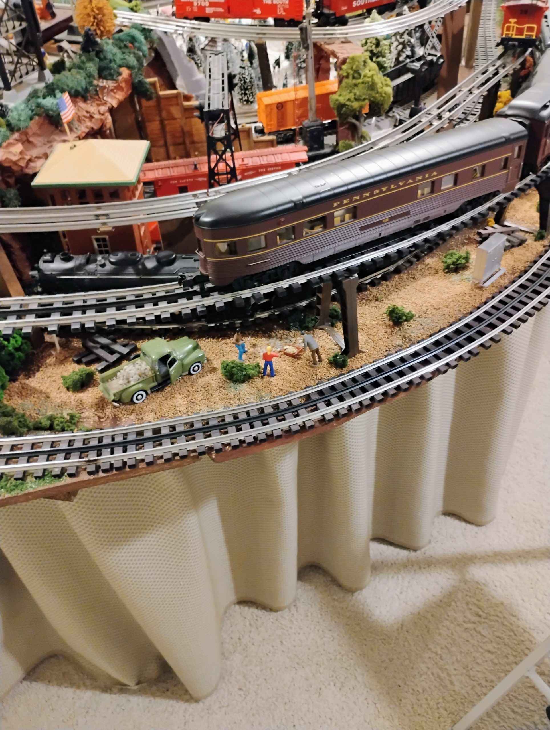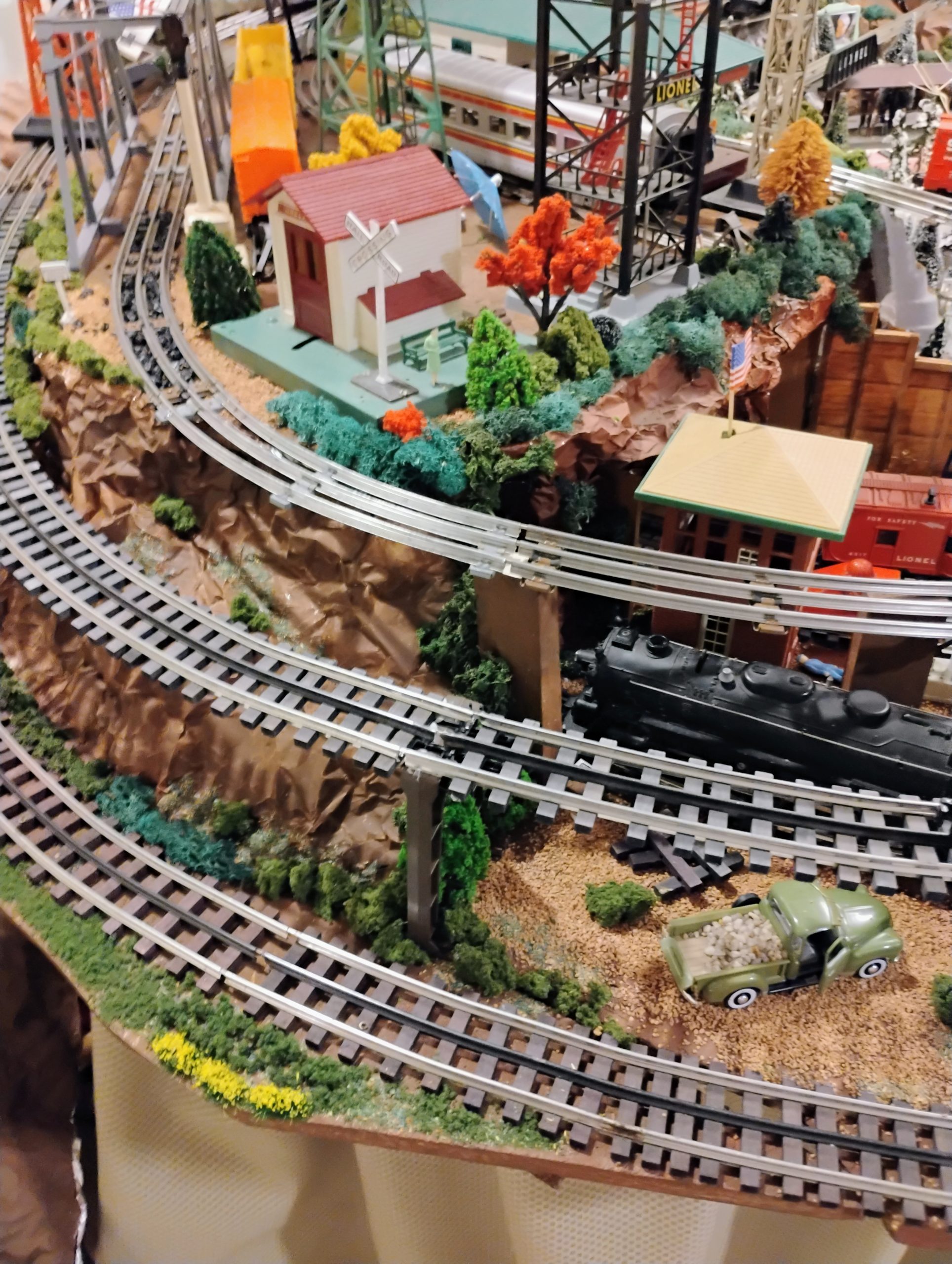 Great layout ! I too am a Lionel post WW2 guy with a collection handed down from my grandfather over the years when I was a kid. Great pictures and I’d love to see more. I plan on posting soon as I am getting to a point where it looks finished. BTW, I thought your aluminum foil idea was great and I may try that in a place that I need to finish now. Thanks so much. I am in Oregon.