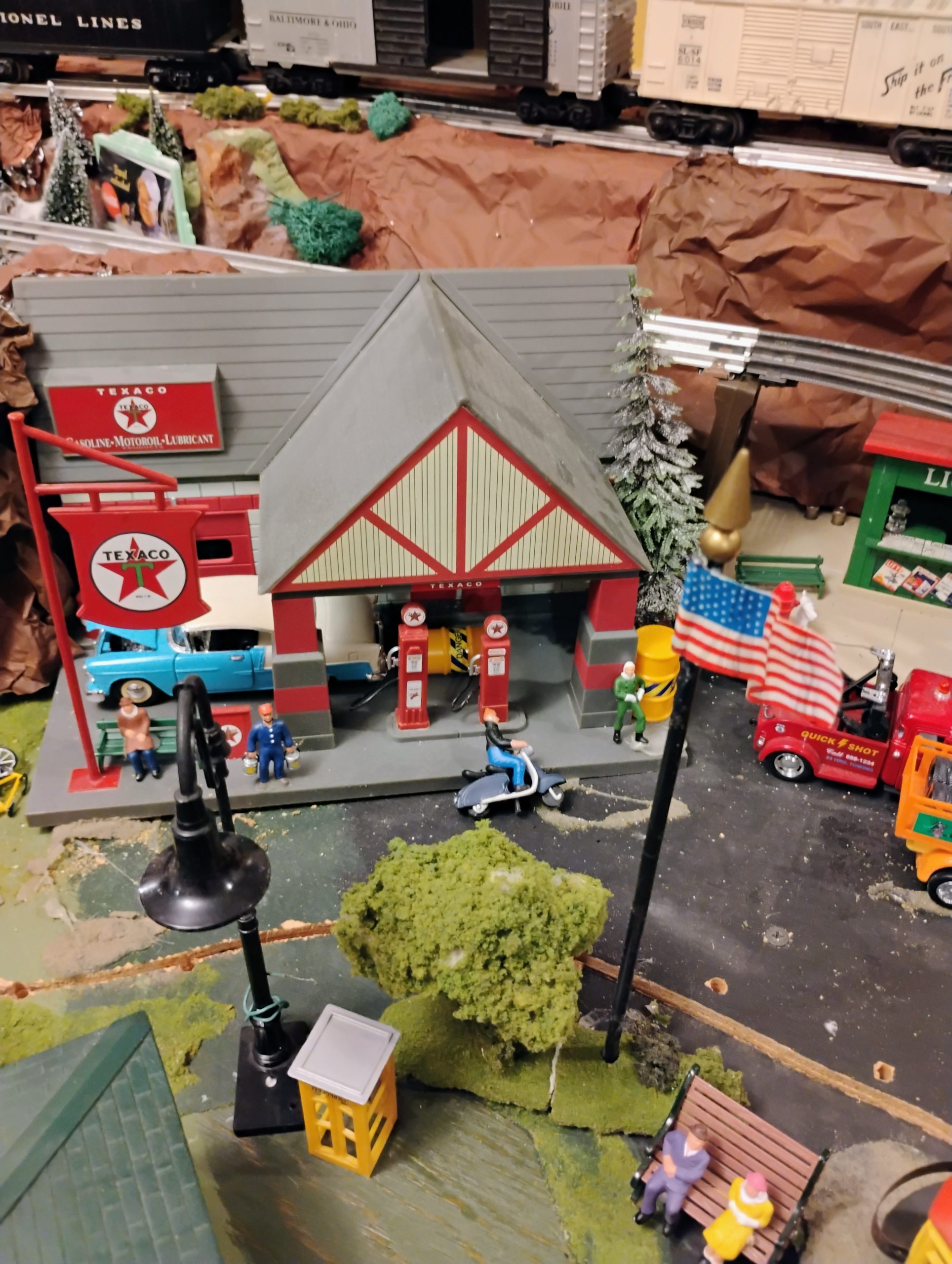 This is great. I like all the color. It always amazes me, how much you can fit on a relatively small O gauge layout. Have fun!