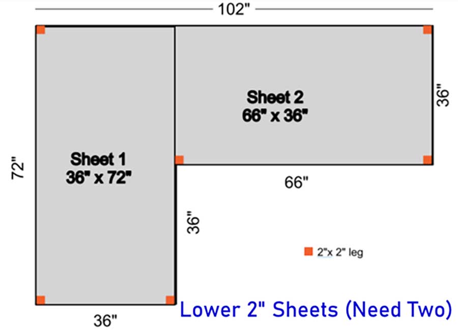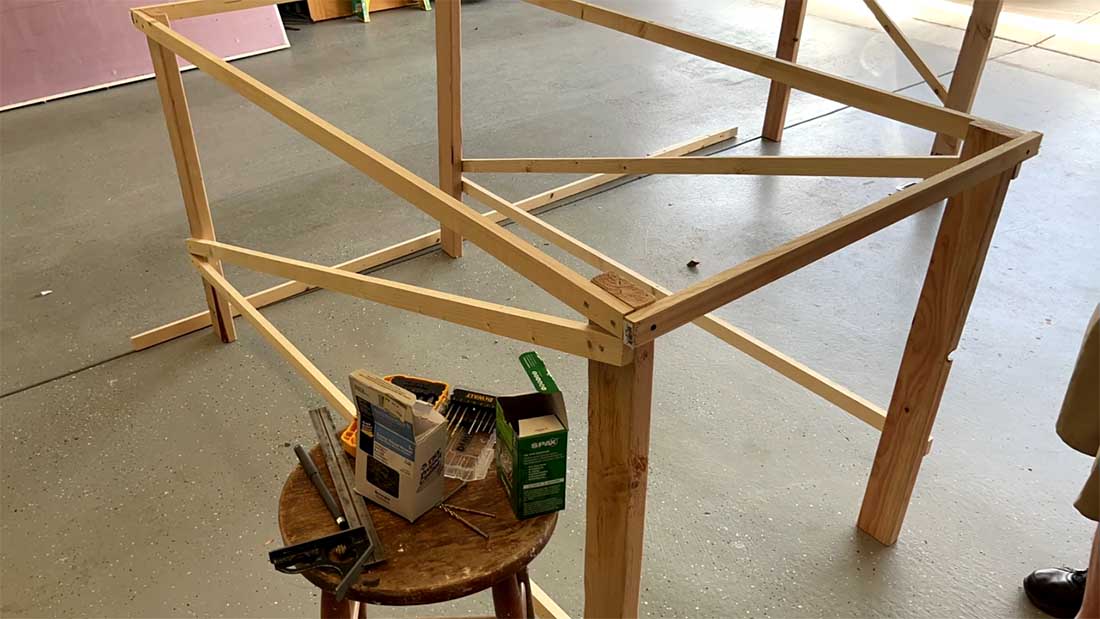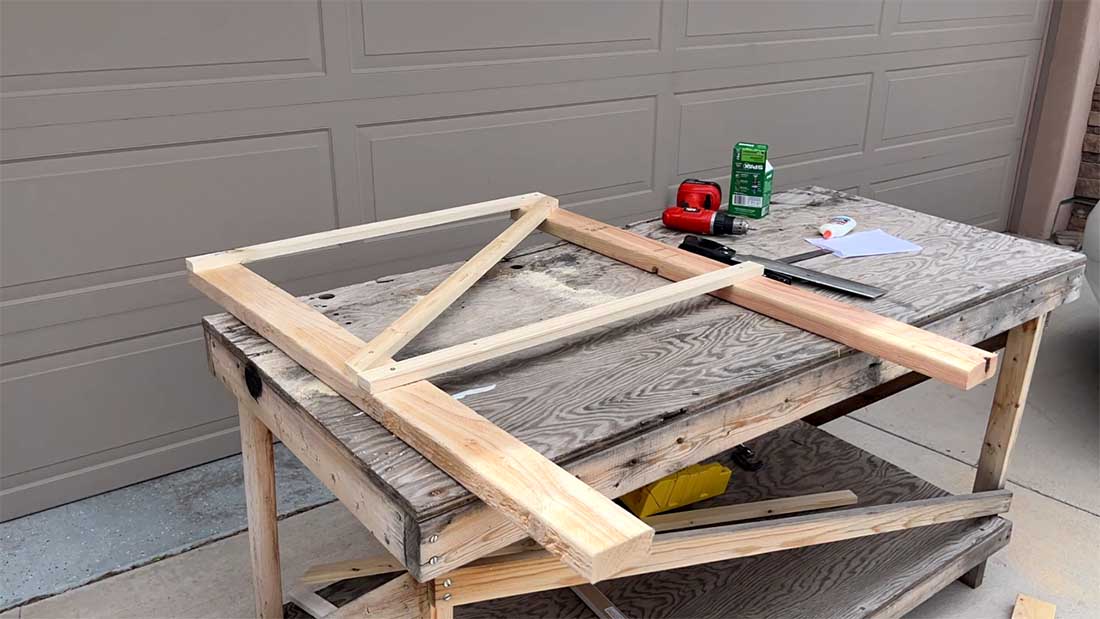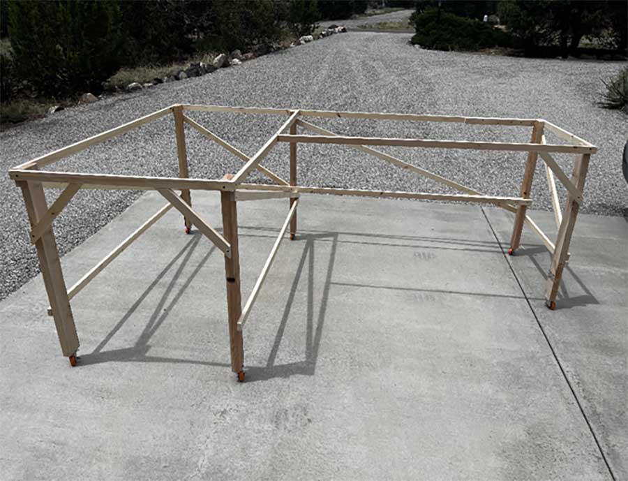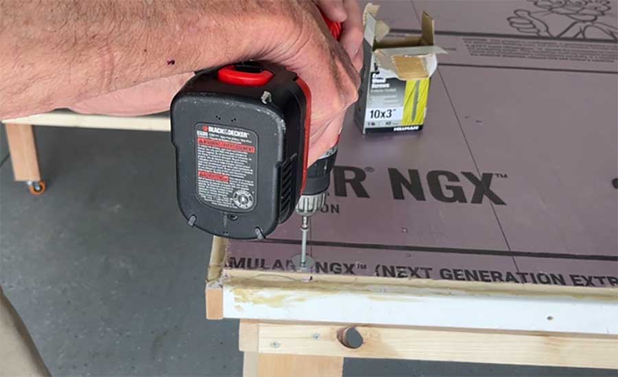 The 2-inch foamboard was screwed to each of the 2×4 legs to hold it down.