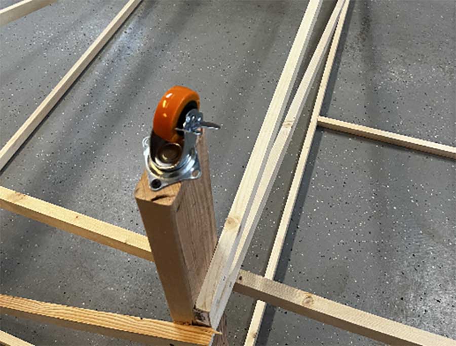 I used swivel wheels on each table leg to make the assembly easy to move.