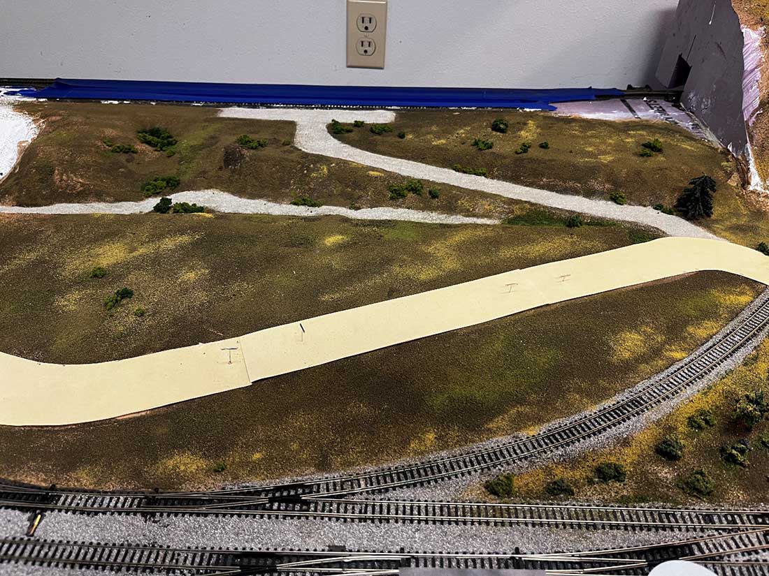 I also like the look of your printed paper roads. That method achieves a very realistic look. It was interesting seeing how you combined the 2″ foam with the plaster cloth and drywall compound to build your scenery base. It looks like it uses less foam than Bill in Virginia’s Sculpt-a-mold over foam layers method. Both methods produce good-looking scenery.
