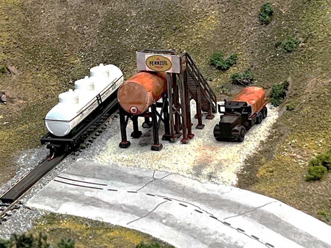 Here’s a model industry fuel tank and truck from Whistle Stop Models. I found the Pennzoil Logo on the web