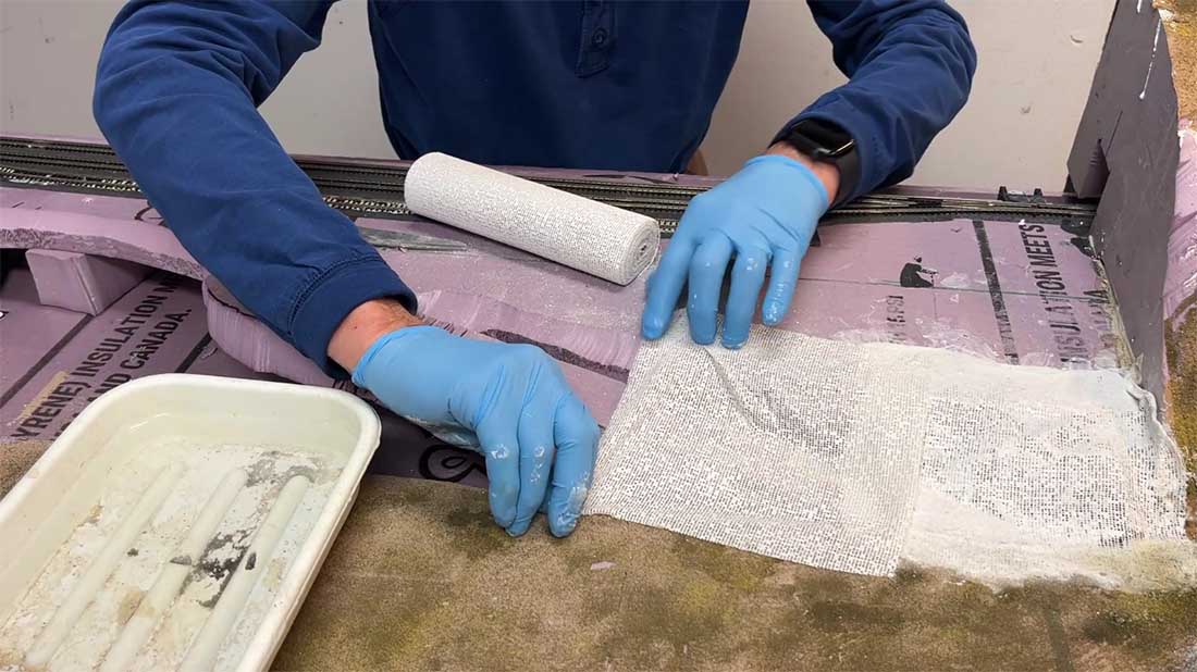 After the cloth had set up, I smoothed on wall board joint compound then sanded it smooth where needed